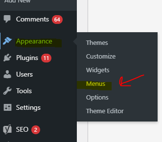 - Navigate to the left side of the page and select appearance > Menus
