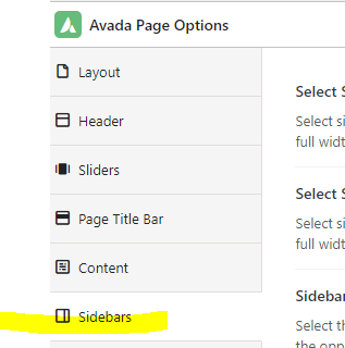 - Scroll to the bottom of the page and find avada options again, and select "Sidebars"