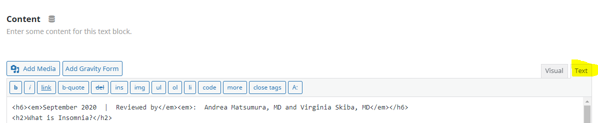 Click "visual" and your text should look like this:
