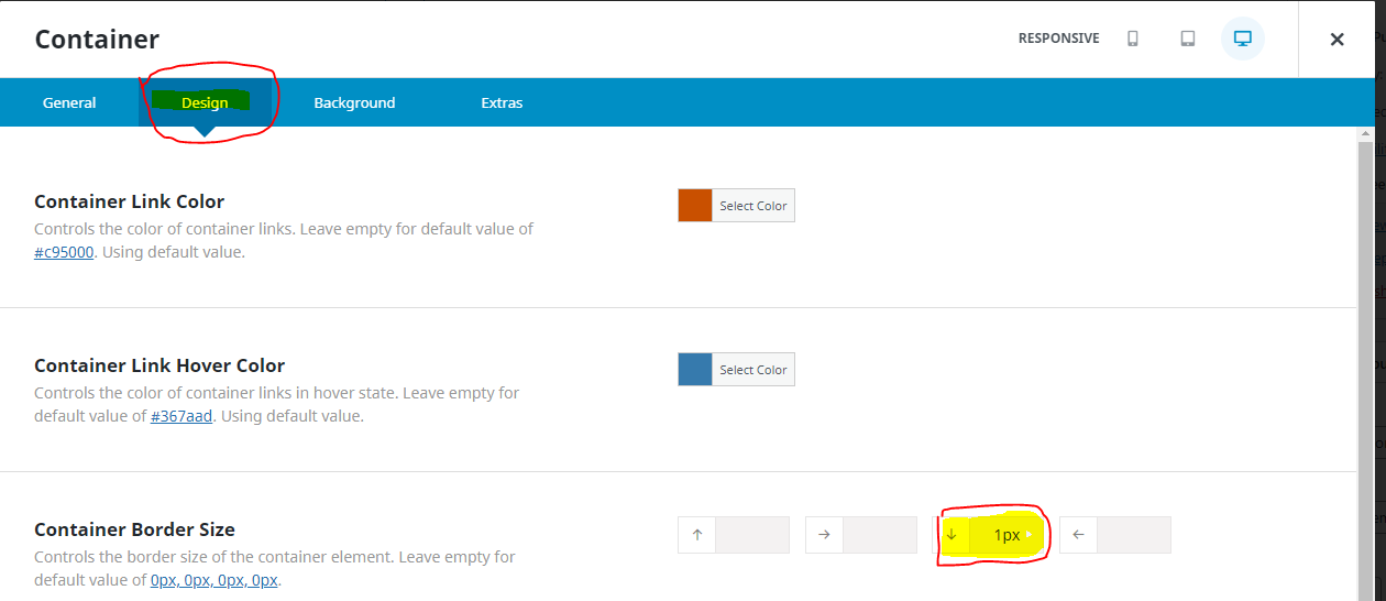 - Edit the container, go to the design tab and enter "1px" for the bottom container border size and save