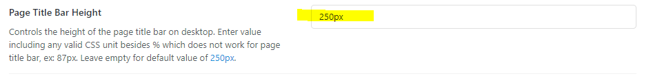 - Set the "Page Title Bar Height" to 250px